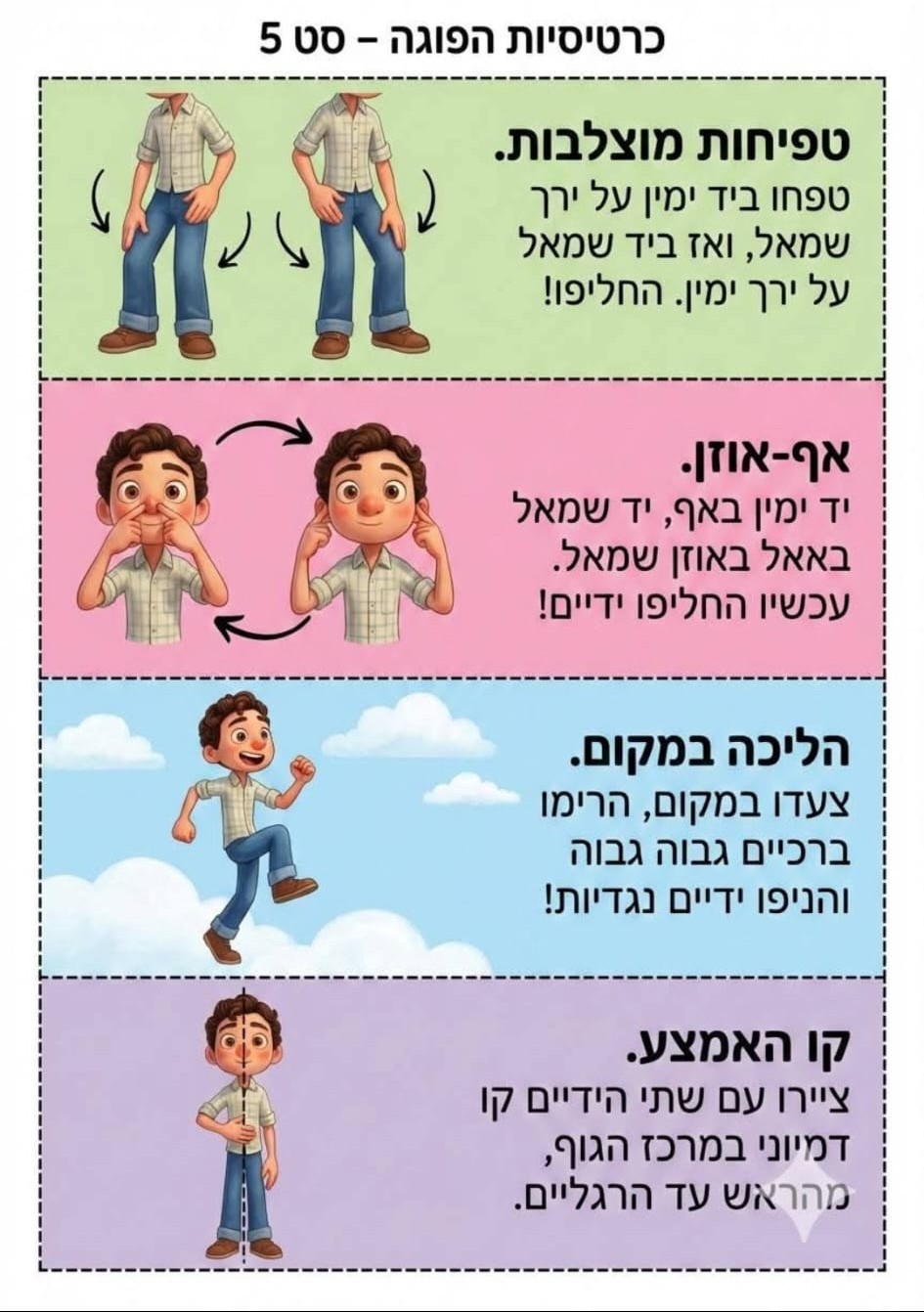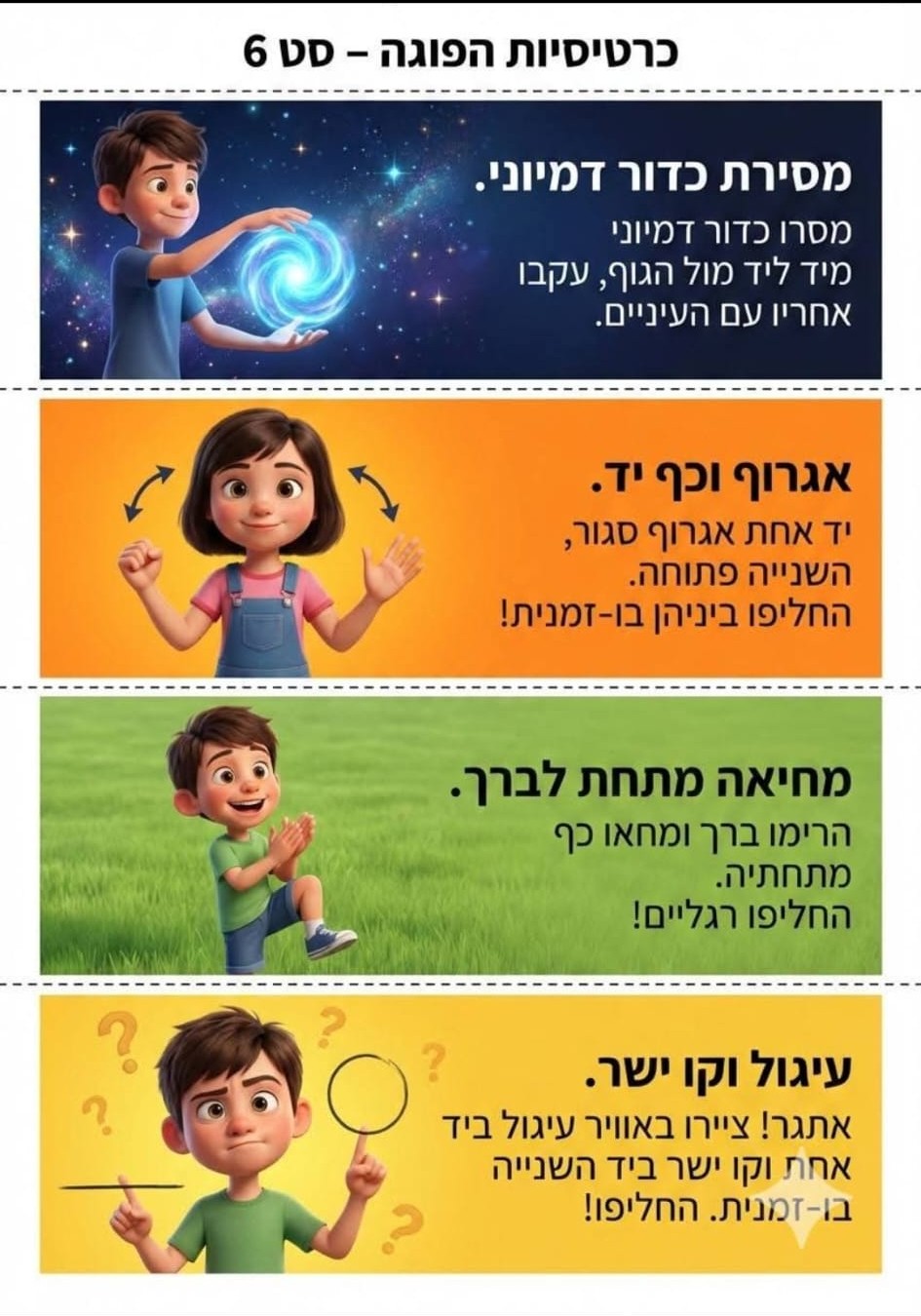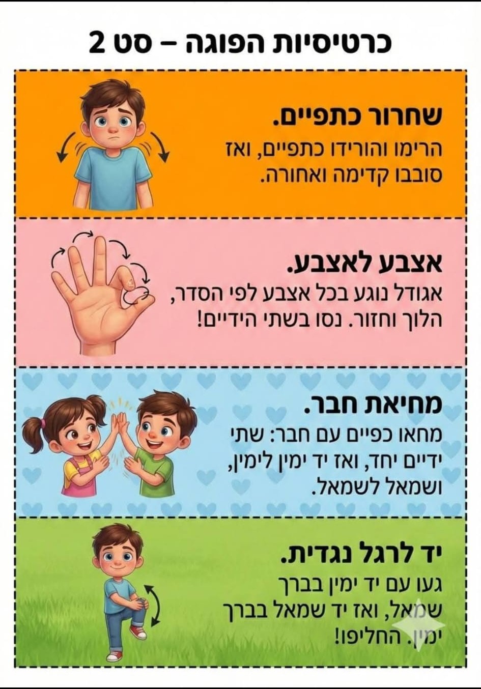מצורפות כרטיסיות עם רעיונות פשוטים לתנועה