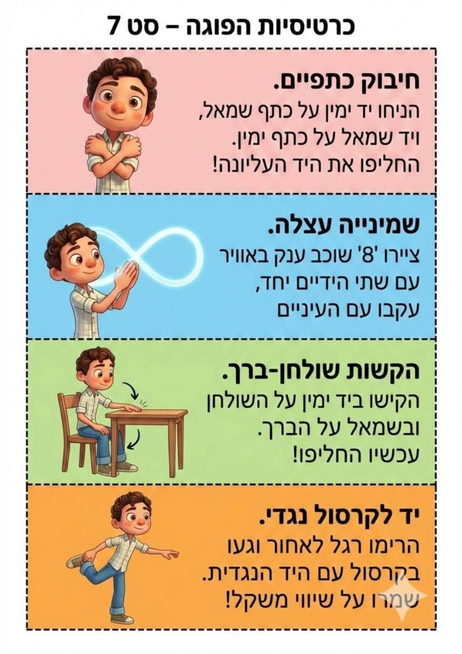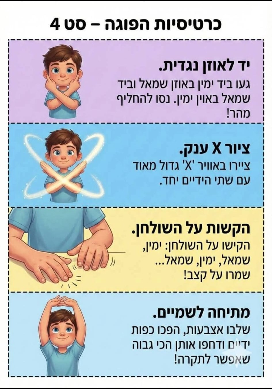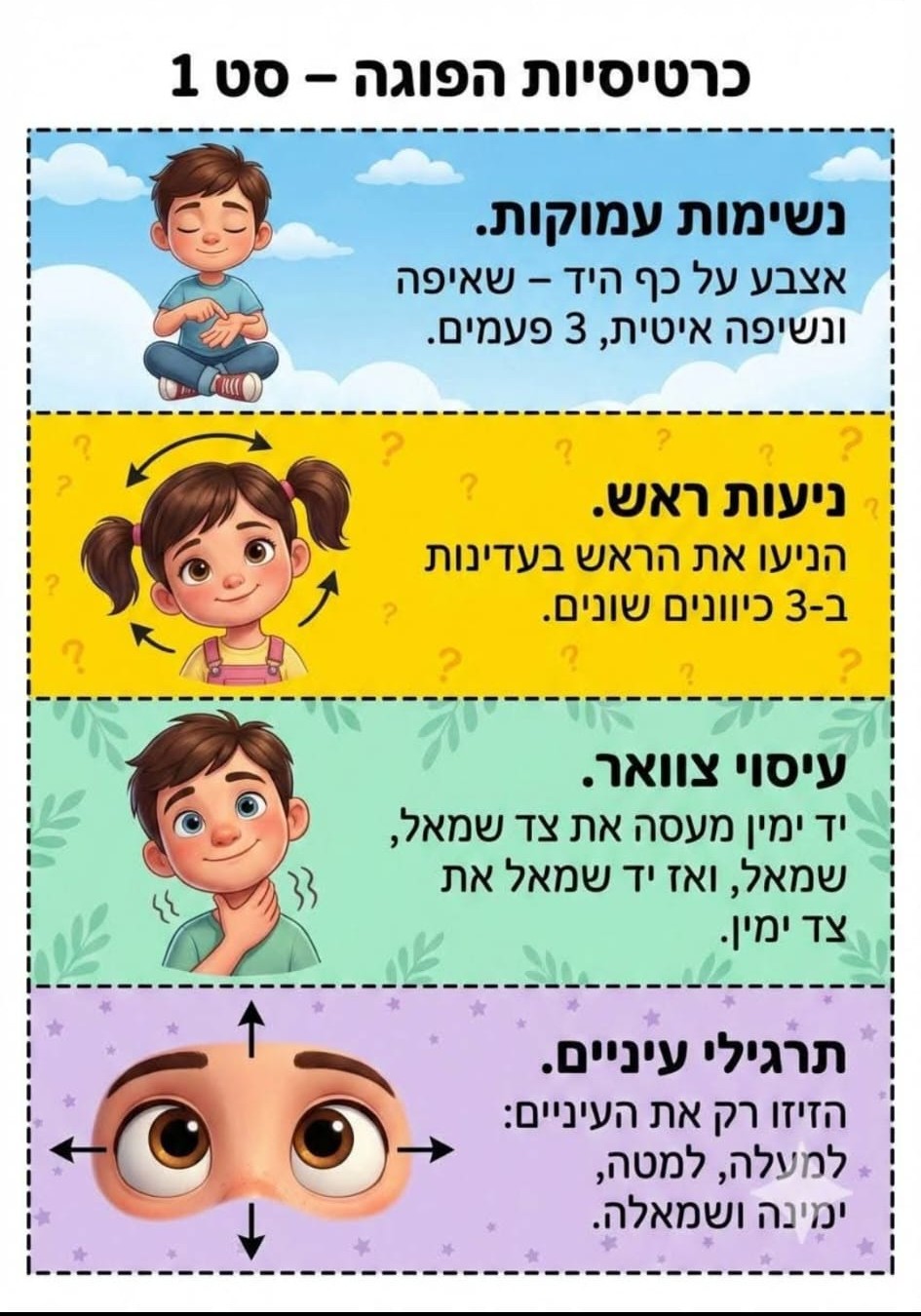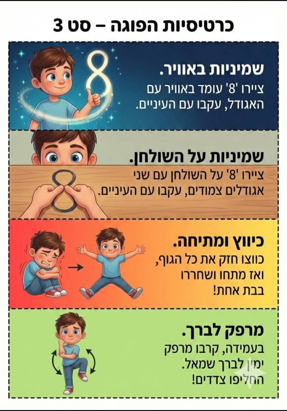 מצורפות כרטיסיות עם רעיונות פשוטים לתנועה