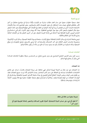 نوصي بمتابعة النشرات في وسائل الاتّصال المختلفة (موقع الإنترنت ،صفحة فيسبوك التابعة للجمع ّية ،رسائل البريد الإلكترونيّة