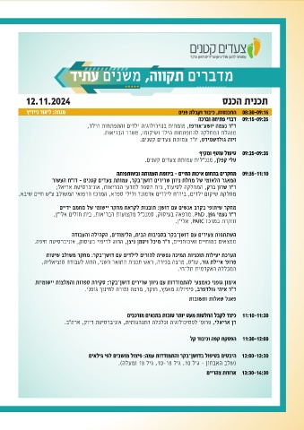 12:00-13:30היבטים בטיפול בדושן־בקר והתמודדות עמה :פיצול מושבים לפי גילאים