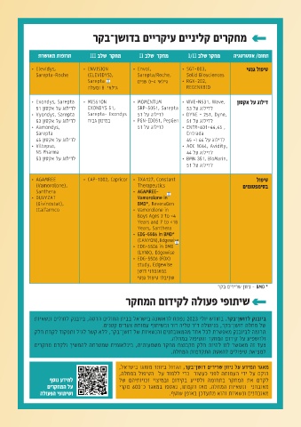 תרופות מאושרת מחקר שלב III מחקר שלב II מחקר שלב I/II תחום /אסטרטגיה