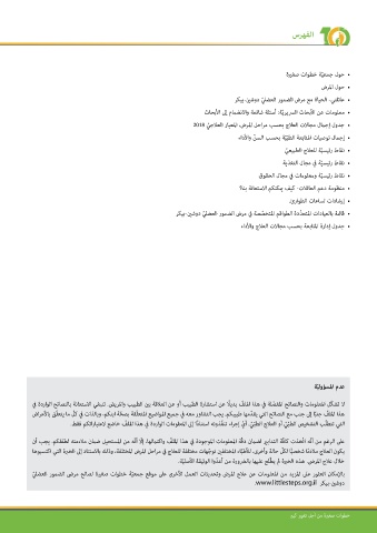 لا تش ّكل المعلومات والنصائح المف ّصلة في هذا المل ّف بدي ًل عن استشارة الطبيب أو عن العلاقة بين الطبيب والمريض .تنبغي الاستعانة بالنصائح الواردة في