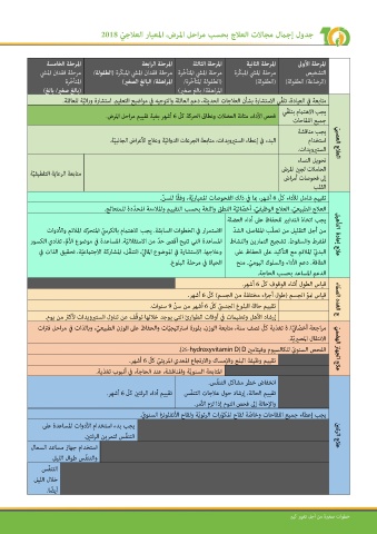 جدول إجمال مجالات العلاج بحسب مراحل المرض ،المعيار العلاج ّي 2018