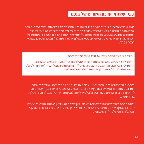 יספרו ההורים למורה מה מצבו של בנם כרגע ,כיצד משפיעה עליו המחלה בשלב זה וייעצו על דרכי