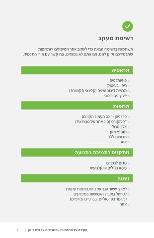 השתמשו ברשימה הבאה כדי לעקוב אחר הטיפולים והתרופות