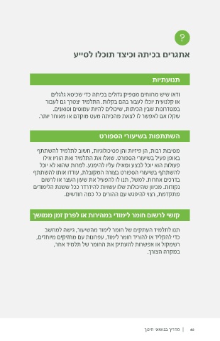 באופן פעיל בשיעורי הספורט .שאלו את התלמיד ואת הוריו אילו