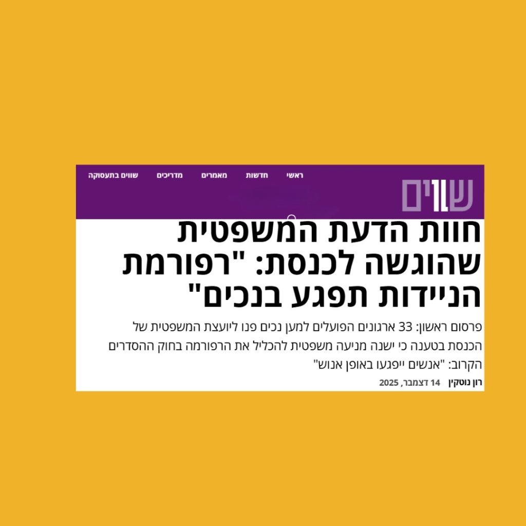 יחד עם ארגונים חברתיים נוספים פנינו ליועצת המשפטית של הכנסת בדרישה ברורה: